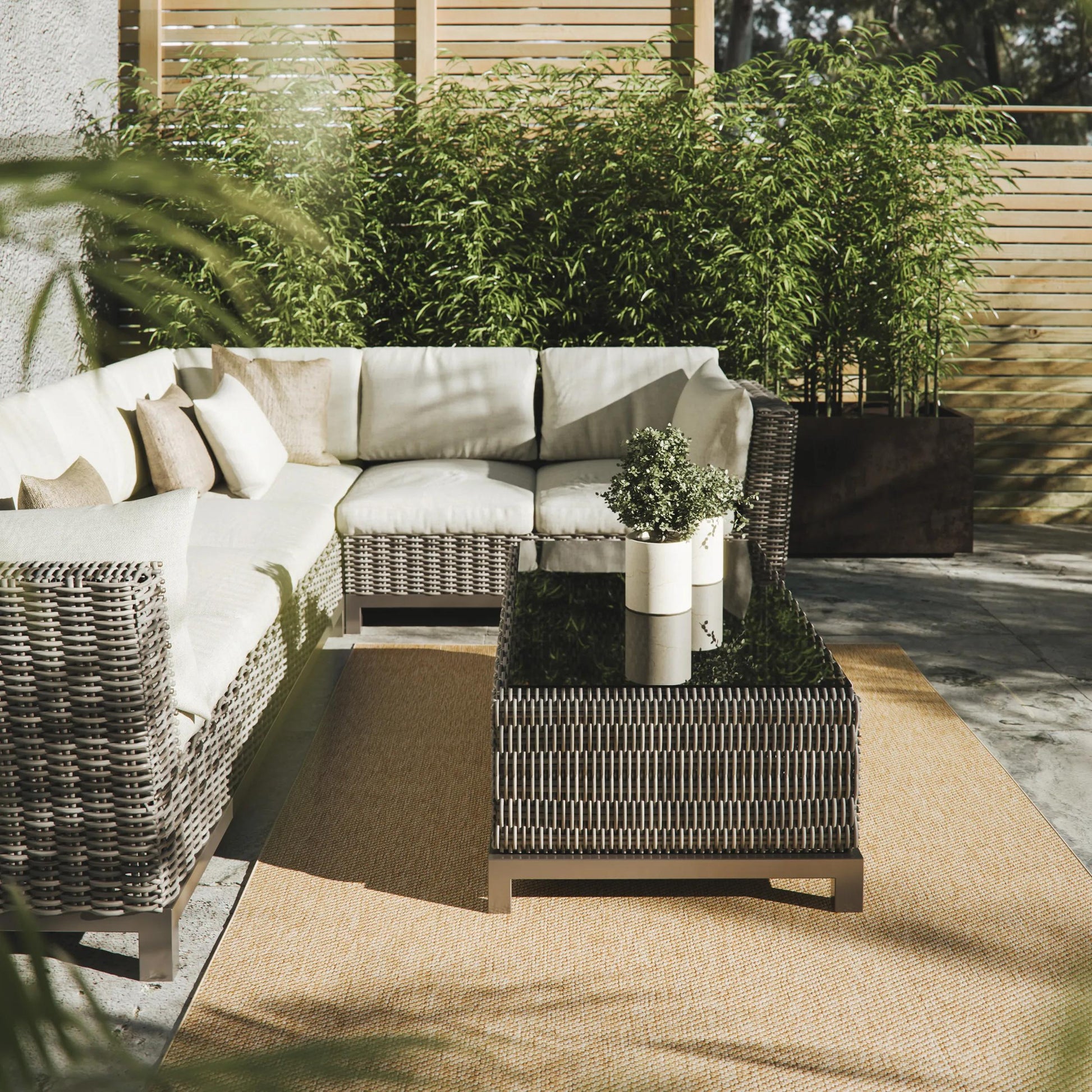 Genieße den natürlichen Charme des Outdoor Teppichs Asti von Interiyou. Mit seiner Naturfaser-Optik und den sanften Farben passt er sich mühelos jedem Raum an – ob Balkon, Terrasse, Wohn- oder Esszimmer. Asti vereint funktionale Qualität mit ästhetischem Design und macht dein Zuhause noch wohnlicher.