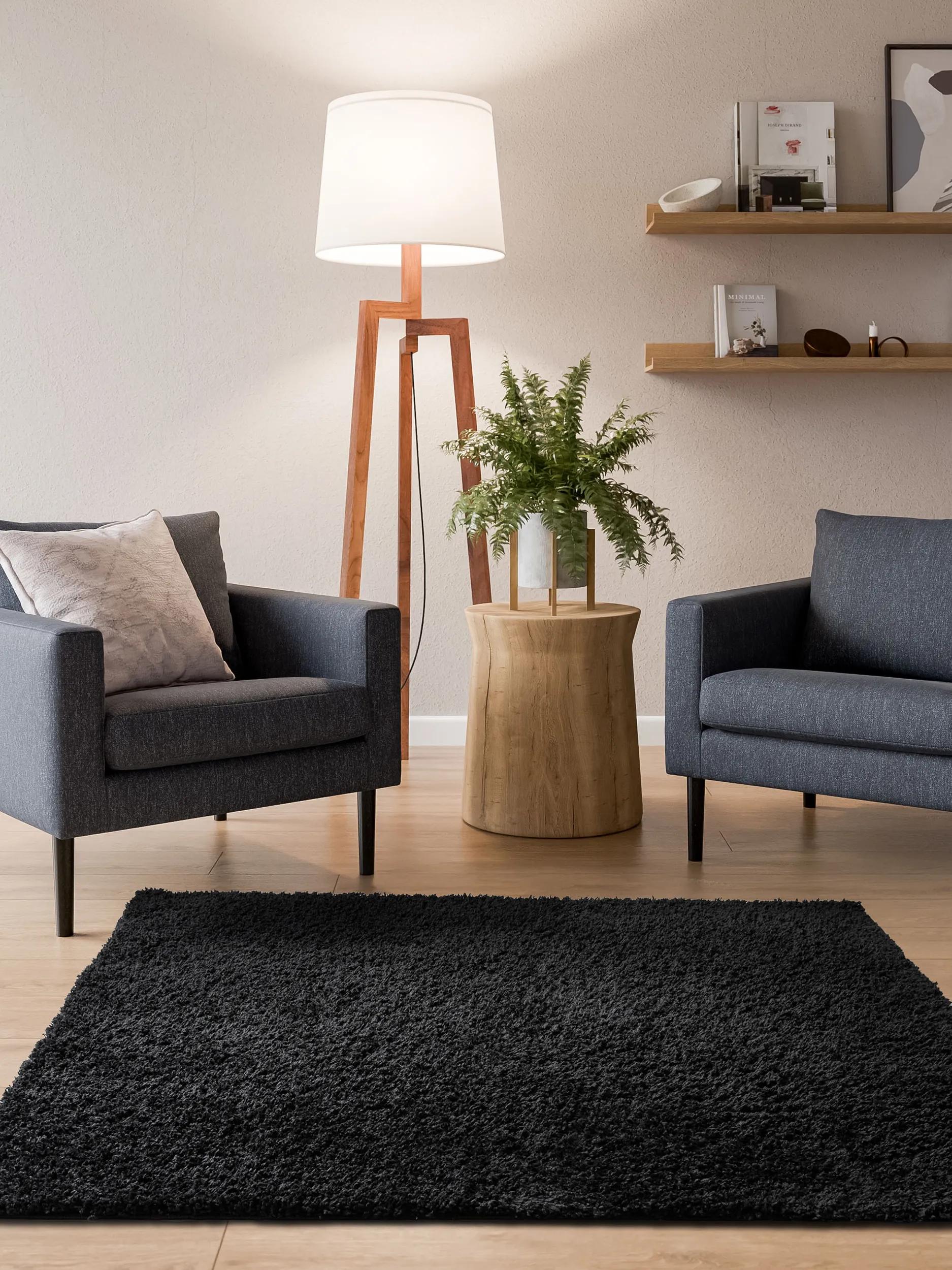 Waschbarer Hochflorteppich Sofia Schwarz